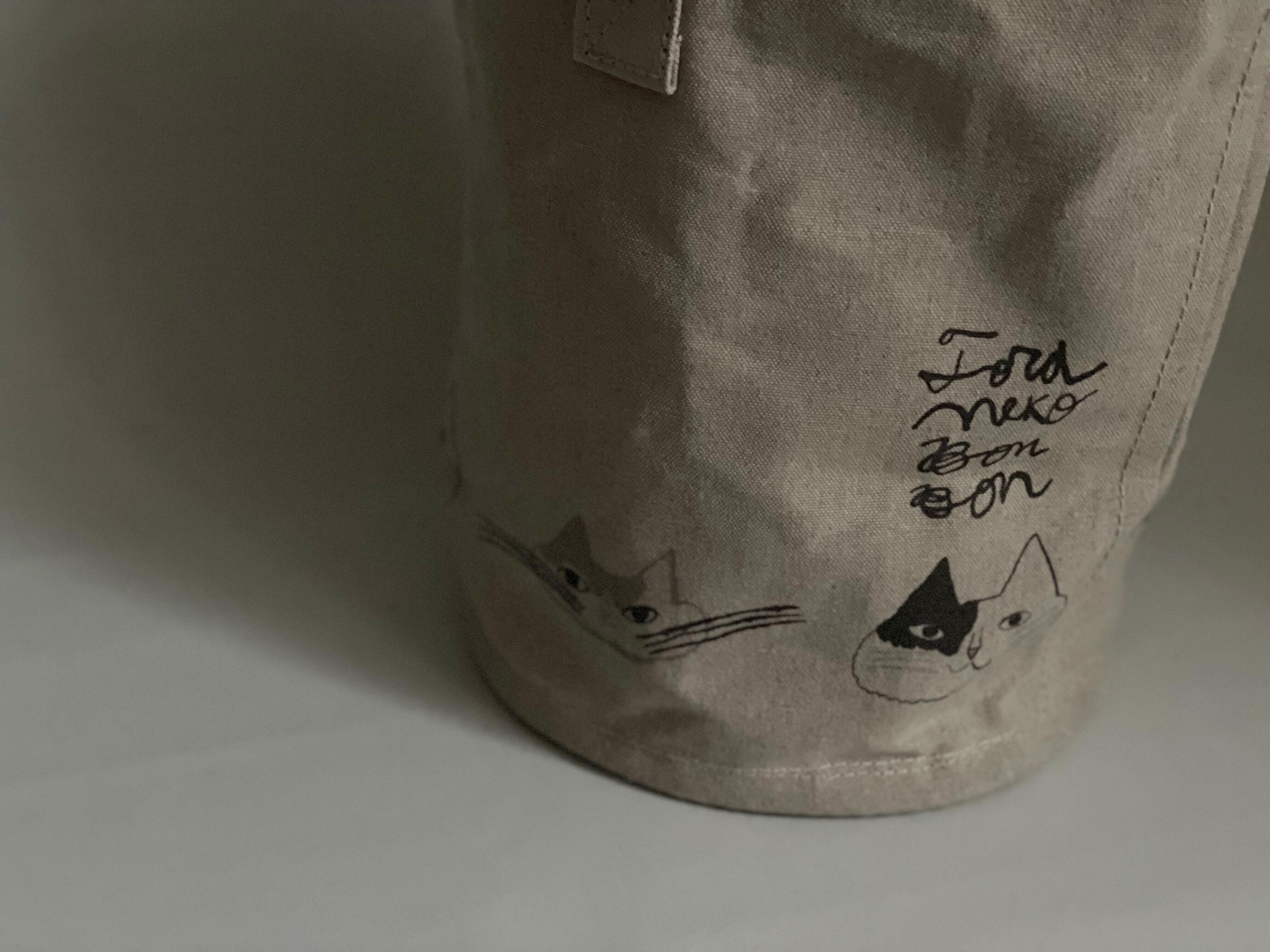 このたび、オリジナルフレンチリネン帆布を使用した「3sun」×「倉敷意匠」によるコラボレーションBAILER BAGに、さらにトラネコボンボンのデザインが施された、とてもスペシャルなバッグが出来上がりました。